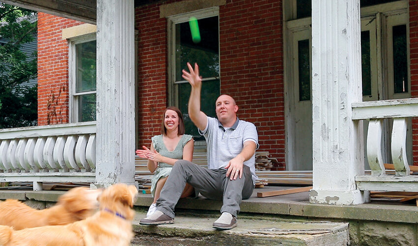 Wabash natives and Indiana Landmarks members Andy and Brittany Bain had been looking for an opportunity to move back home from Carmel when they saw an article about the project in an Indiana Landmarks e-newsletter. Captivated by a photo of the Classical Revival house at 143 E. Main Street, they saw their chance. In May 2021, they closed on the property and began restoring the house, previously carved into five apartments, back into a single-family residence. “It’s about balancing the feeling of a historic home with modern conveniences,” says Andy. “My wife is a much bigger visionary than I am and was able to see what it could be.