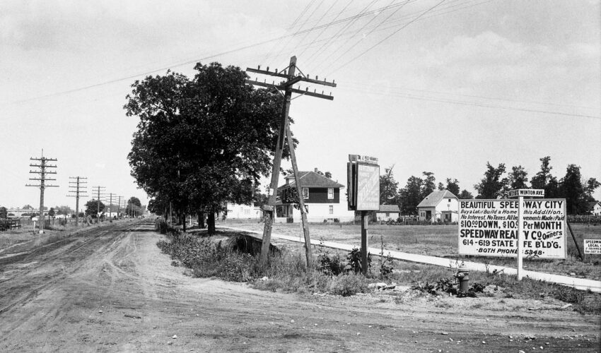 In the early twentieth century, automotive entrepreneur Carl Fisher, with help from his friend and real estate developer Lemon “Lem” Trotter, selected what was then farmland five miles northwest of Indianapolis to build a proving ground for automakers, joining with partners James Allison, Arthur Newby, and Frank Wheeler to open the Indianapolis Motor Speedway in 1909. But Fisher’s pursuits didn’t stop there, envisioning Speedway as not only an industrial hub, but a well-appointed, self-contained “horseless city” where workers could walk between home, work, shops, and eateries. Trotter, Fisher, and Allison propelled this vision, purchasing and developing property through their jointly held Speedway Realty Company, ultimately leading to the incorporation of the Town of Speedway in 1926.